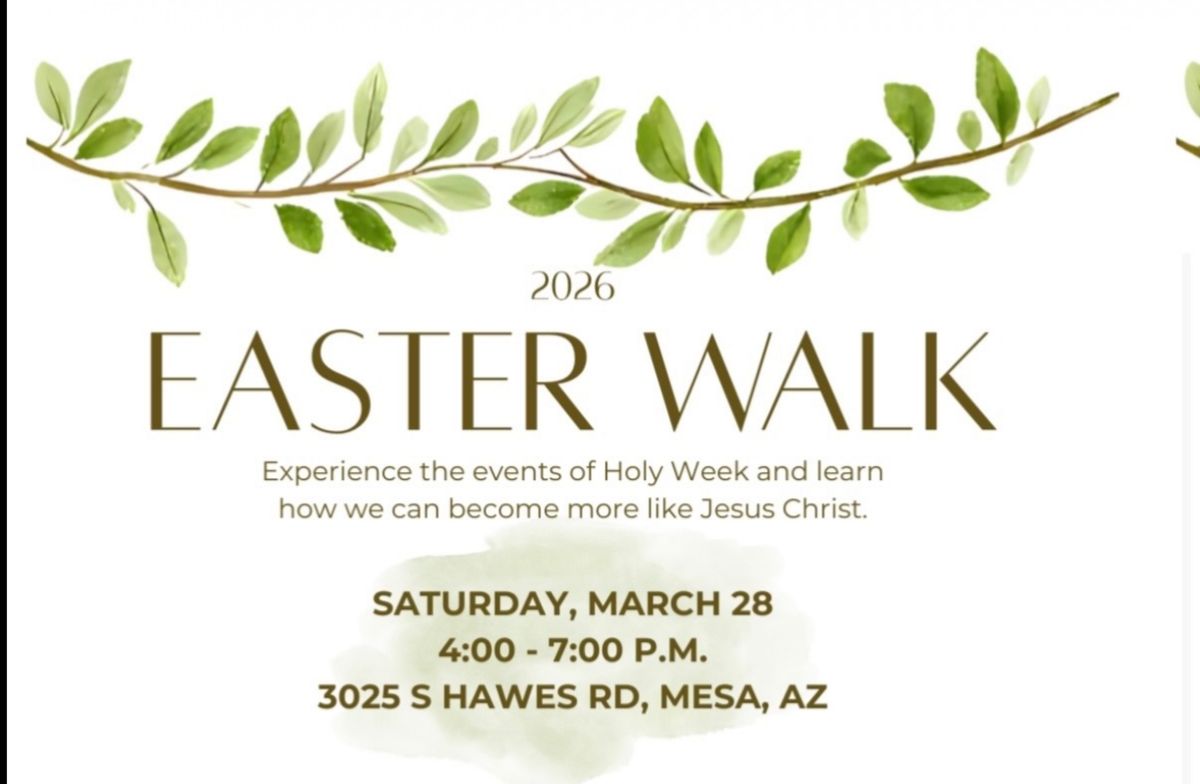 Experience the events of holy week and learn how we can be more like Jesus. Enter at the south lobby to begin. Each stop on the walk includes an interactive way to learn about the events of holy week. Dress casual and plan on 30 minutes for the walk. There will be light refreshments.