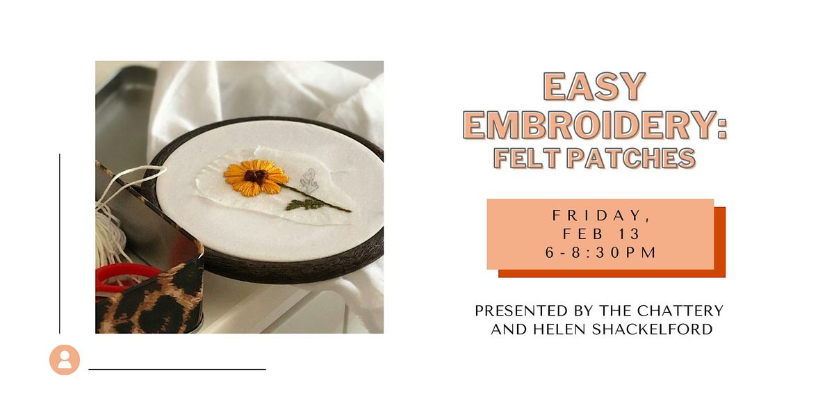 We'll be using small embroidery hoops and a range of techniques. This hands-on workshop includes all materials, so you’ll leave with your very own felt patch—and the confidence (and tools!) to keep stitching on your own.