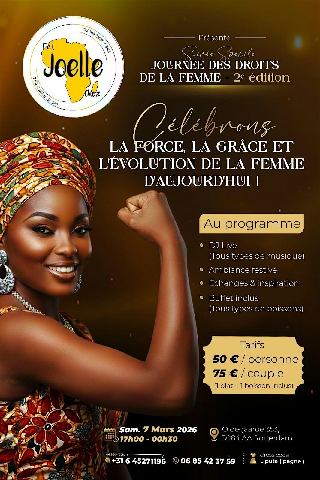 EatChezJoëlle présente la Soirée Droits de la Femme – 2ᵉ édition : musique, échanges et buffet pour célébrer la femme.