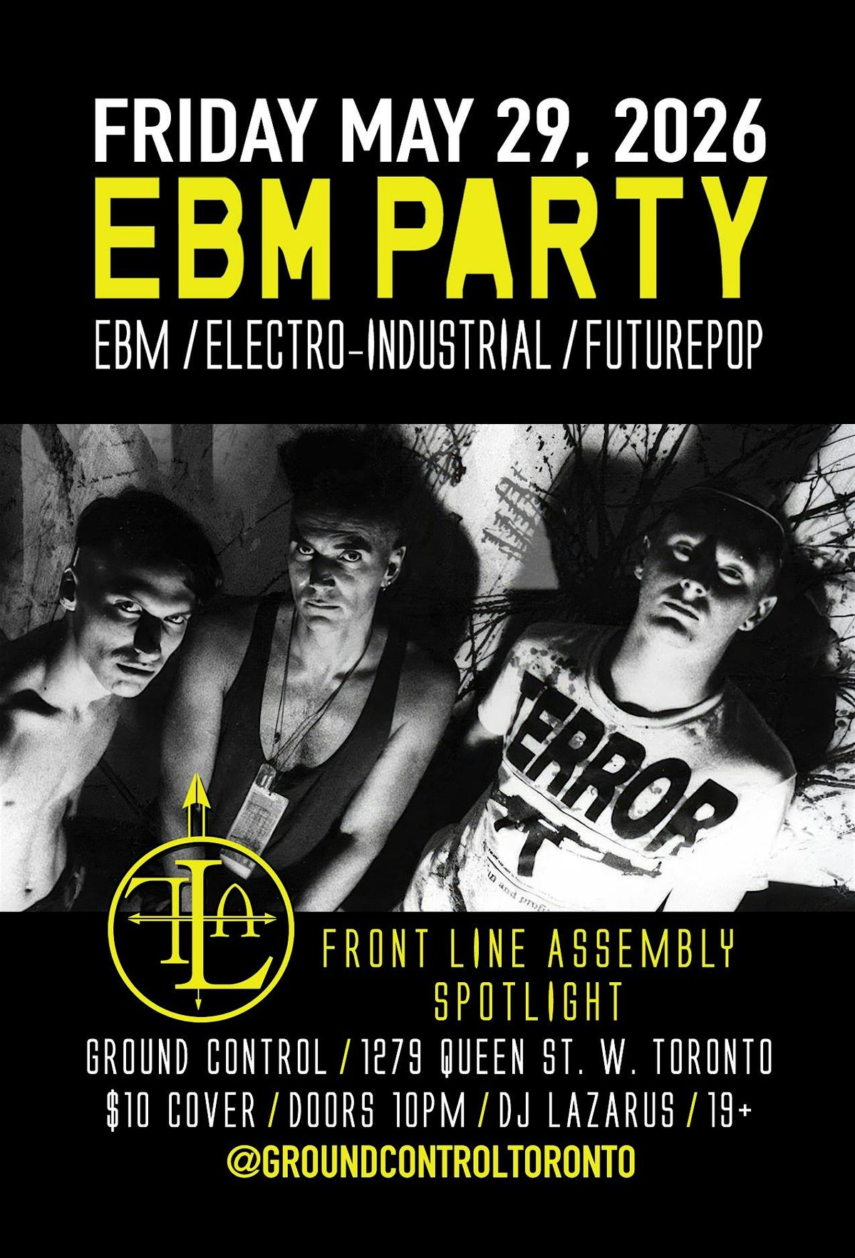 EBM PARTY brings you the best of Electronic Body Music, Electro-Industial, and Futurepop with a FRONT LINE ASSEMBLY Spotlight.