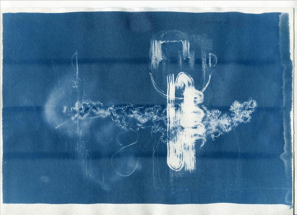 Die Ästhetik der Cyanotypie hat etwas Mystisches und Nostalgisches. Das tiefe Blau, die Räumlichkeit, die je nach belichteten Objekten entsteht und die Tatsache, dass man das Ergebnis nicht immer genau planen kann, tragen wohl dazu bei.