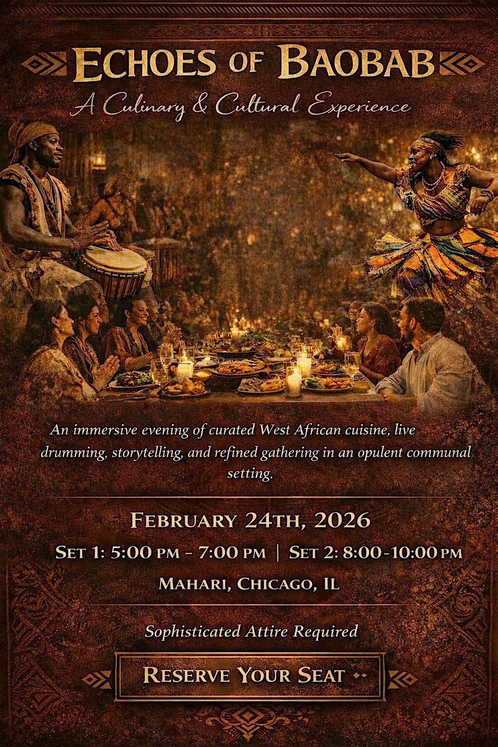 Echoes of Baobab is more than a meal—it is a celebration of culture, rhythm, and refined gathering, created for food and culture lovers seeking something meaningful, memorable, and beautifully executed.