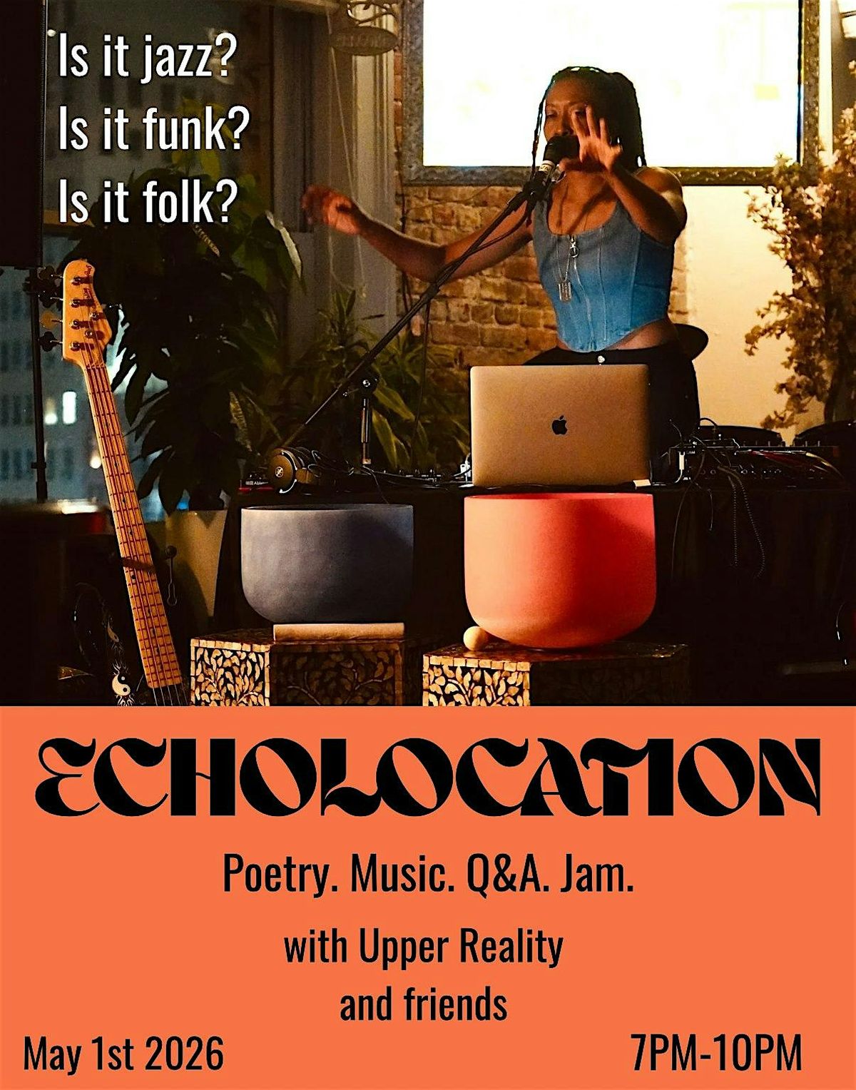 echolocation is an intimate gathering of music, poetry, and live collaboration. Upper Reality — LA-based artist, producer, and multi-instrumentalist — bring the music of life into the room: layered harmonies, live looping, and sound that moves through you before you’ve had time to name it.