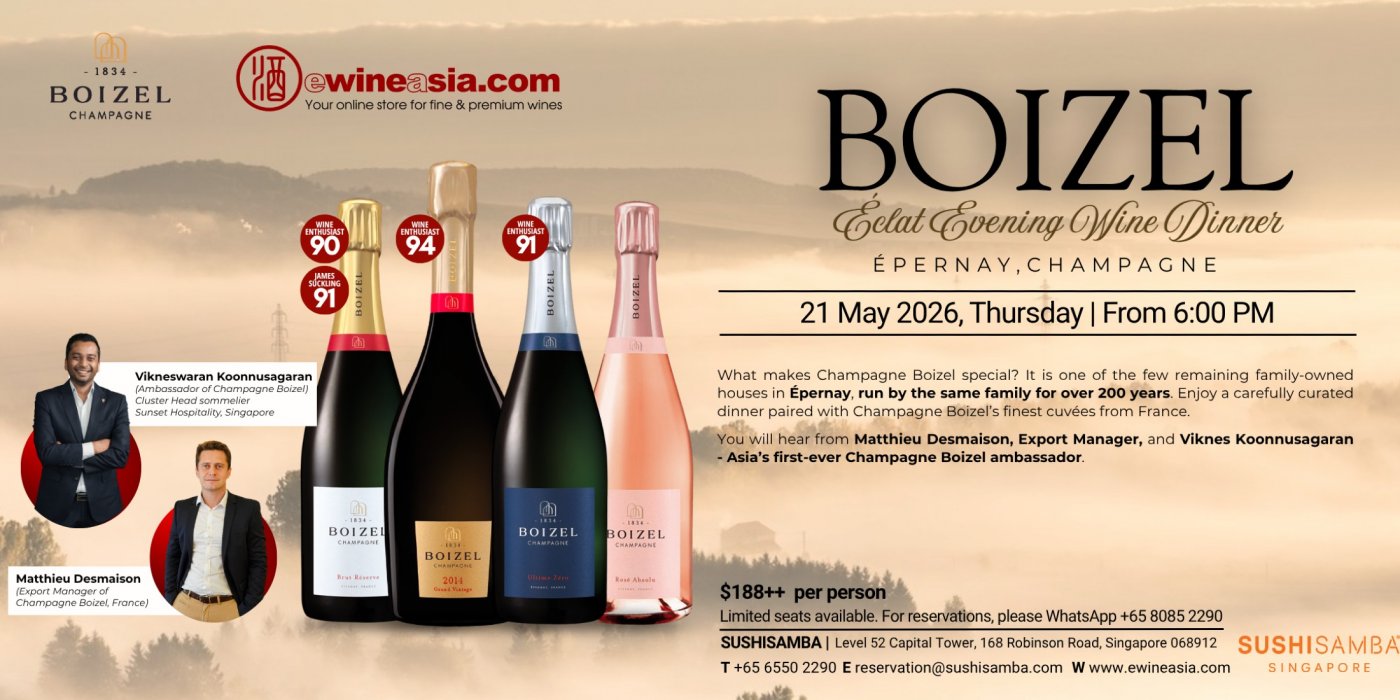 On 21 May start from 6 PM, SUSHISAMBA Singapore hosts an exclusive Boizel Champagne Dinner, where heritage Champagne meets contemporary gastronomy.