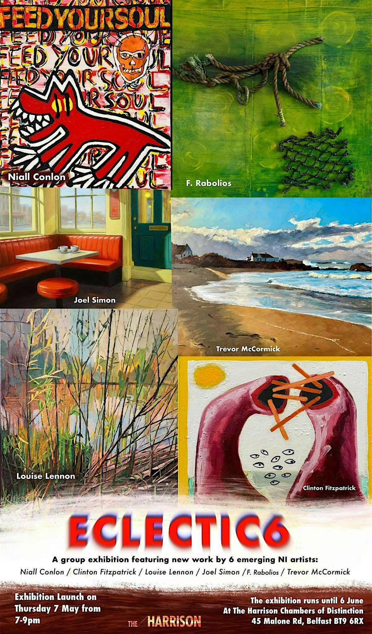 This dynamic and captivating group exhibition brings together six exceptionally talented Northern Irish artists: Niall Conlon, Clinton Fitzpatrick, Louise Lennon, Joel Simon, F. Rabolios, and Trevor McCormick. They are each presenting a distinctive and expressive body of work. Expect a rich and diverse collection spanning contemporary and visually striking pieces that celebrate the depth and energy of local artistic talent.