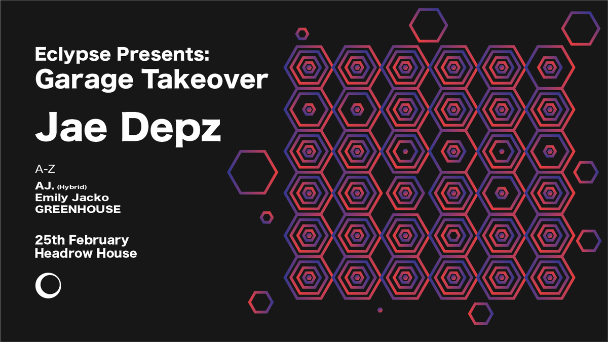 Eclypse Events proudly announces its official Launch at the iconic Headrow House, in the heart of Leeds. Eclypse is an independent event organiser and curator, founded on a passion for music and community. Eclypse aims to deliver live music experiences, highlight emerging artists and drive new sounds into the live music scene.Jae Depz, a pivotal figure in the Bassline and Garage scene, is joined by a stellar lineup featuring AJ., GREENHOUSE & Emily Jacko. His high-energy remixes and mashups have garnered international attention earning him massive support from some of the industry's most established DJs, including MK, Mainphase & Interplanetary Criminal, and Girls Don’t Sync.