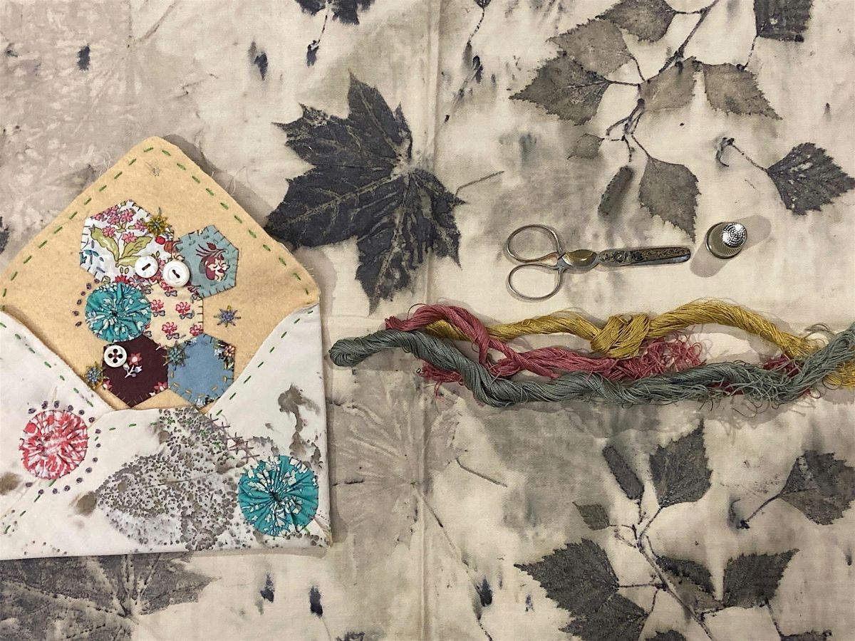 While the fabric is steaming, we will start to create some hand stitching details for a lovely envelope shaped pouch, perfect for a travelling sewing kit.