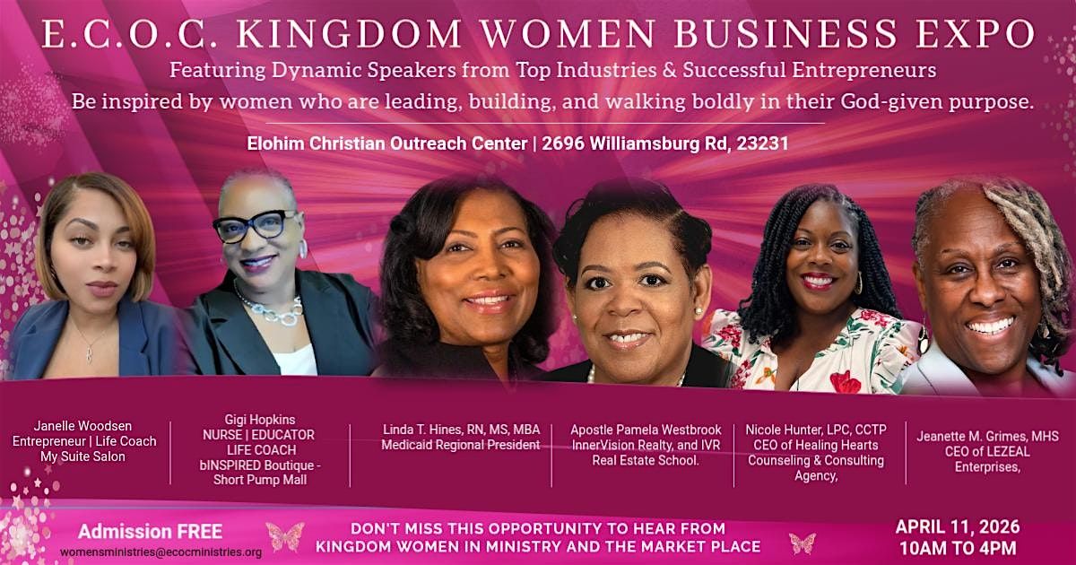Join us for a powerful and inspiring experience at the E.C.O.C Kingdom Women Business Expo – Pearls & Purpose, a dynamic gathering designed to empower, connect, and celebrate women in business, leadership, and purpose.