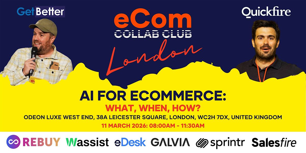 Join us in London for the 2026 eCom Collab Club series, co-hosted by Nathan Lomax from Quickfire Digital and Rich Evans from Get Better. We're assembling the UK's brightest eCommerce minds, sharing unfiltered insights and unmissable strategies and making sure we're forming unmatched human connections.