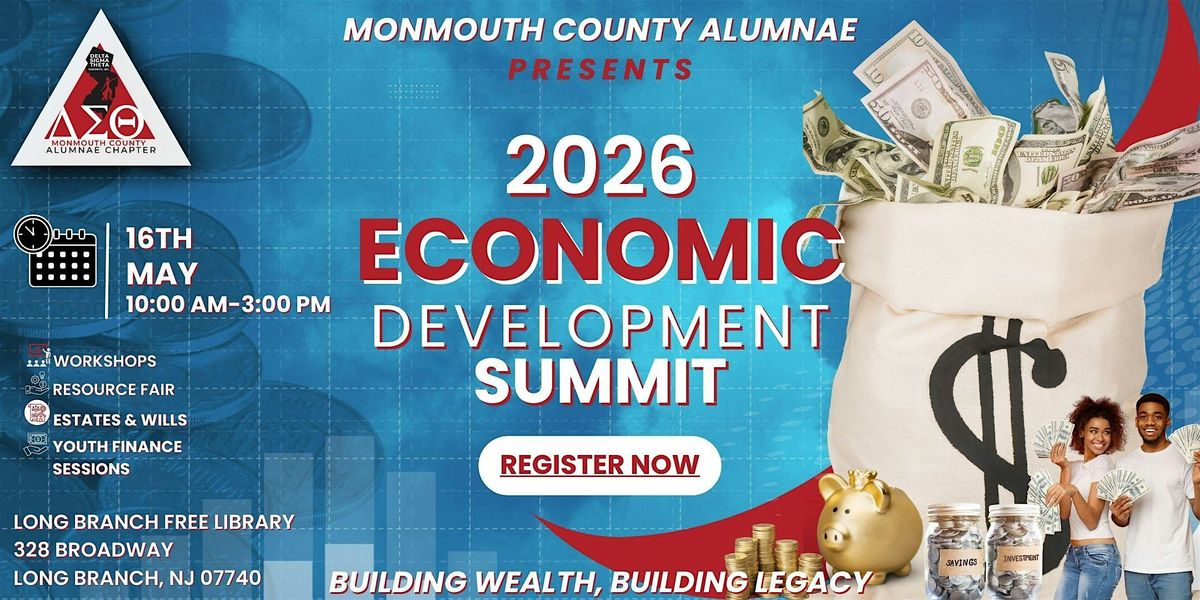 On behalf of the Monmouth County Alumnae Chapter of Delta Sigma Theta Sorority, Incorporated, we are honored to invite you to attend our Economic Development Summit on Saturday, May 16, 2026, from 10:00 a.m. to 3:00 p.m., at the Long Branch Free Public Library.