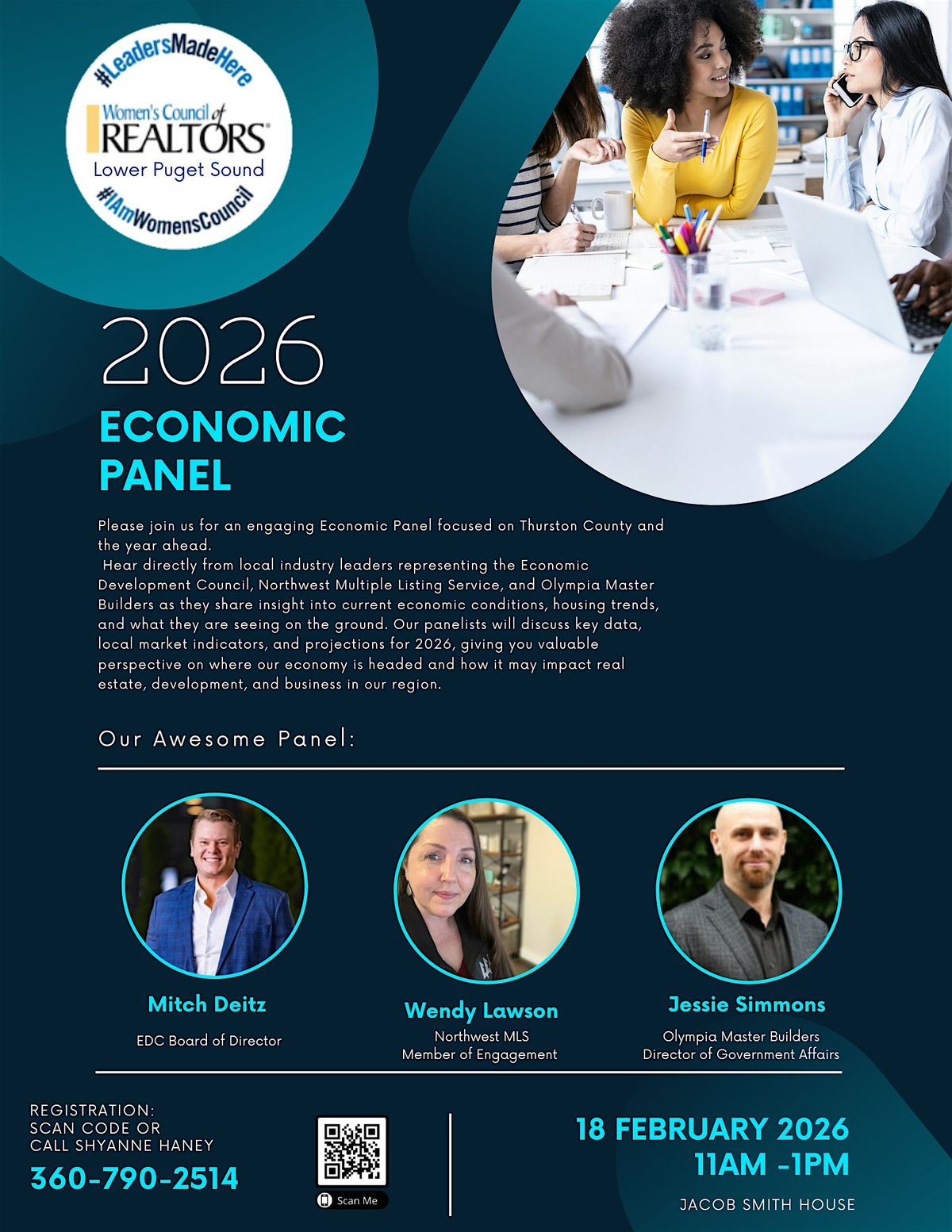 Hear directly from local industry leaders representing the Economic Development Council, Northwest Multiple Listing Service, and Olympia Master Builders as they share insight into current economic conditions, housing trends, and what they are seeing on the ground. Our panelists will discuss key data, local market indicators, and projections for 2026, giving you valuable perspective on where our economy is headed and how it may impact real estate, development, and business in our region.