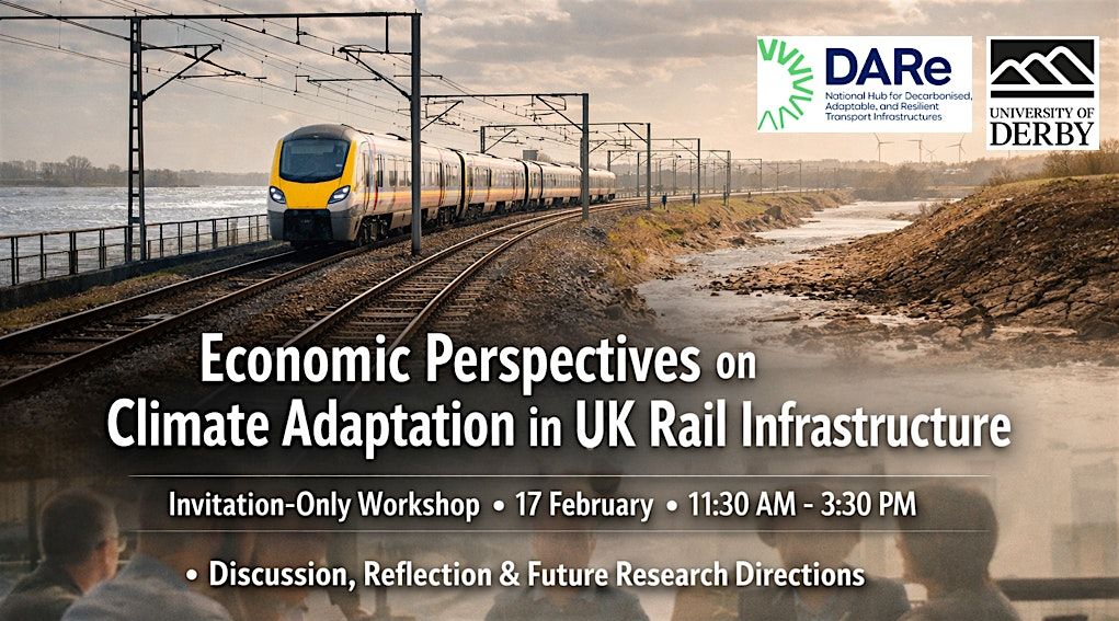 This workshop brings together researchers, industry practitioners, and policy stakeholders to explore emerging economic insights on proactive climate adaptation in UK rail infrastructure. The event is organised by the University of Derby and delivered as part of a sub-project within the DARe Hub, funded by UK Research and Innovation.
