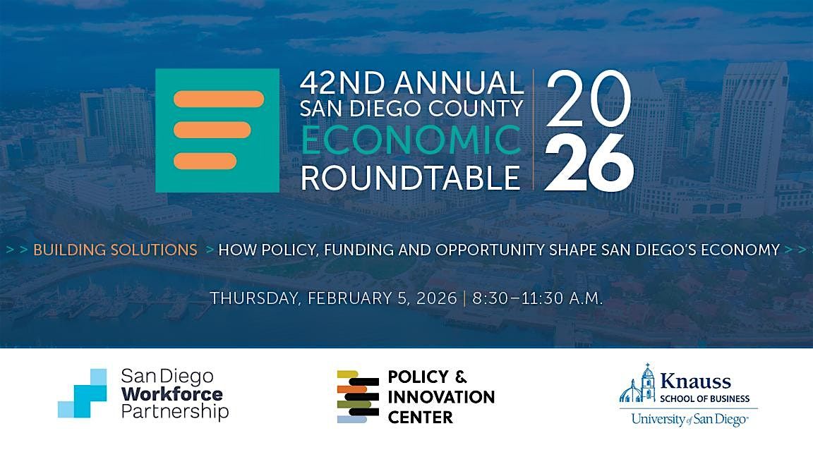 Now in its 42nd year, the Economic Roundtable brings together regional leaders, economists, and workforce experts to explore how national and state-level economic and policy shifts are shaping San Diego’s workforce, affordability and access to opportunity.