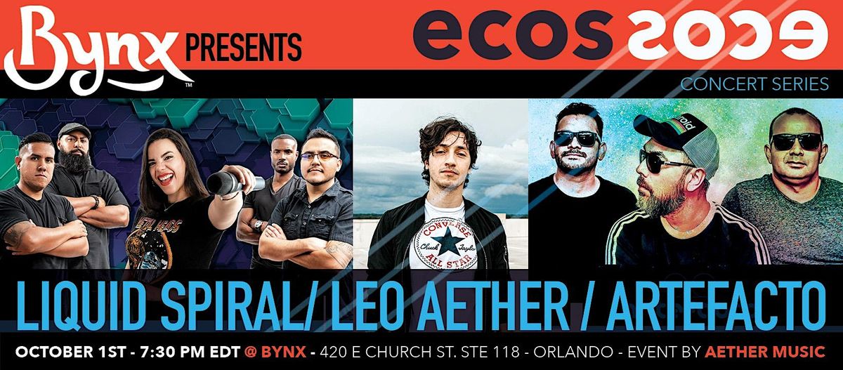 The Ecos Concert series returns to Bynx Cafe this September with rock band Liquid Spiral, singer songwriter Leo Aether and Latin rock band AAbout this Event
