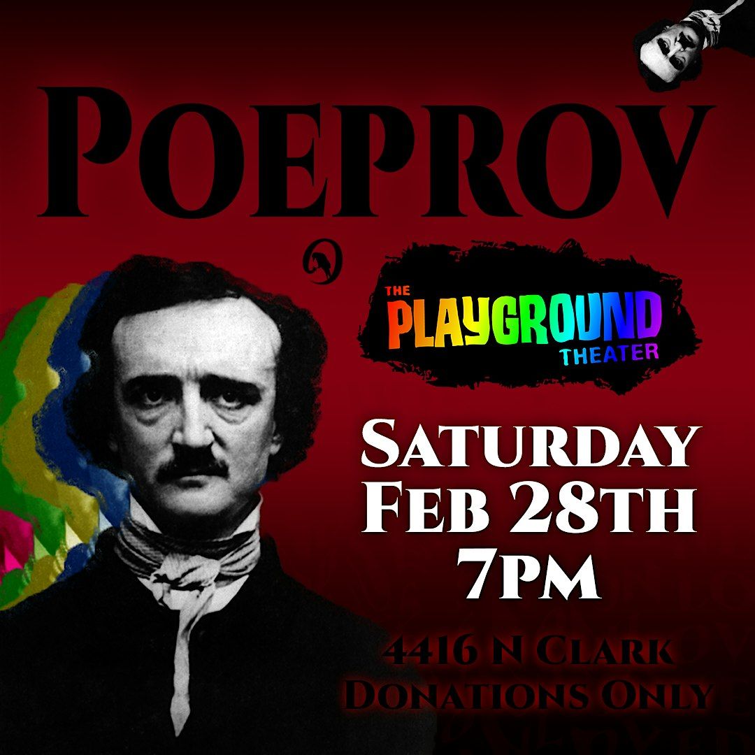 Poeprov is a fully poeduced, fully impoevised play based on the works of Edgar Allan Poe and suggestions from the audience. This show features some of Chicago's most talented narrative improvisers, a different Poem every month, and Darkness.