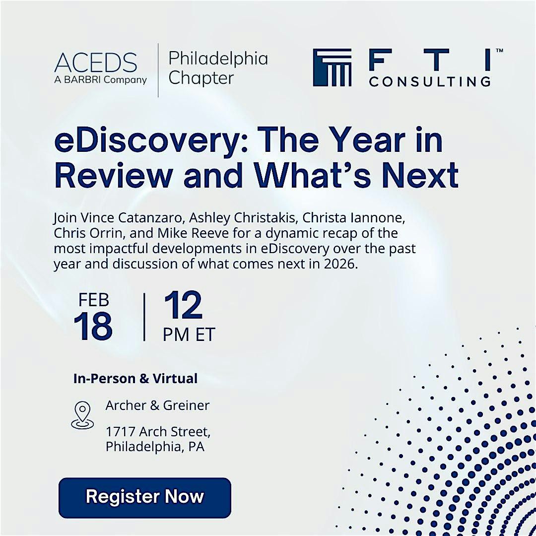 Join Vince Catanzaro, Ashley Christakis, Christa Iannone, Chris Orrin, and Mike Reeve as they break down the most significant eDiscovery developments from the past year and look ahead to what's on the horizon for 2026.