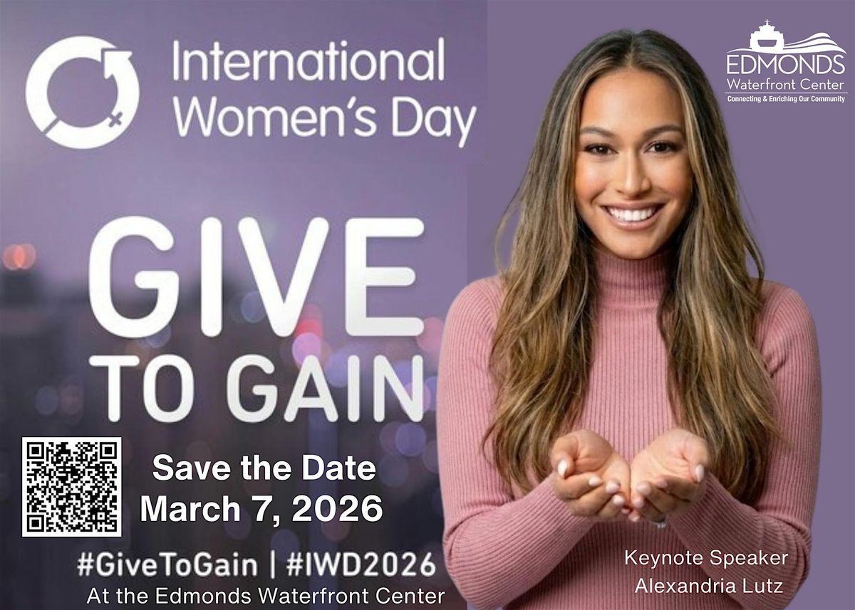 The Edmonds Waterfront Center is excited to host the 8th Annual Edmonds International Women’s Day. Join us for brunch, breakout sessions and networking opportunities. This year’s theme, Give to Gain, encourages a mindset of generosity, collaboration and collective empowerment. Whether through donations, knowledge, resources, advocacy, visibility, education, mentoring or time, every contribution helps build a more supportive and interconnected world, not just as a benefit for women, but for our entire society.