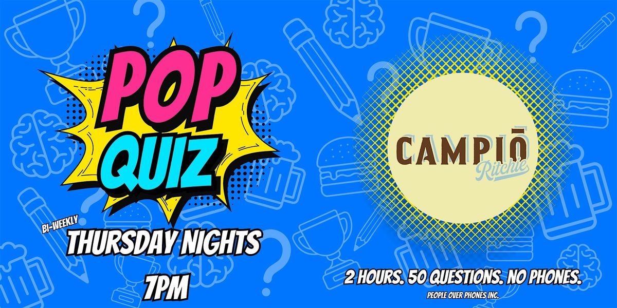 We're bringing high quality pub trivia to Campio Ritchie! Join us every other Thursday at 7:00pm for a 2 hour trivia night where we'll dive into 5 rounds of General Knowledge Trivia & Name That Tune, and you'll dive into delicious craft brewed beer and pub food!