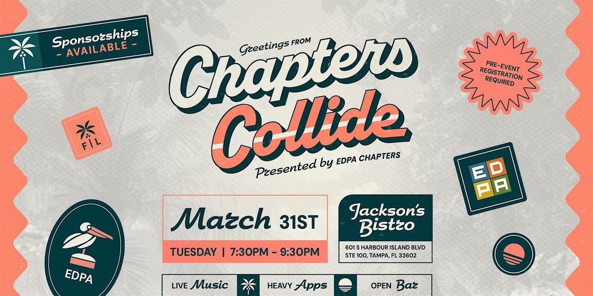 This year, EDPA Chapters Collide at EXHIBITORLIVE 2026 is going coastal at Jackson’s Bistro in Tampa, FL. Relax with fellow members while enjoying a premium open bar, delicious appetizers, and live music as the sun sets over the water.