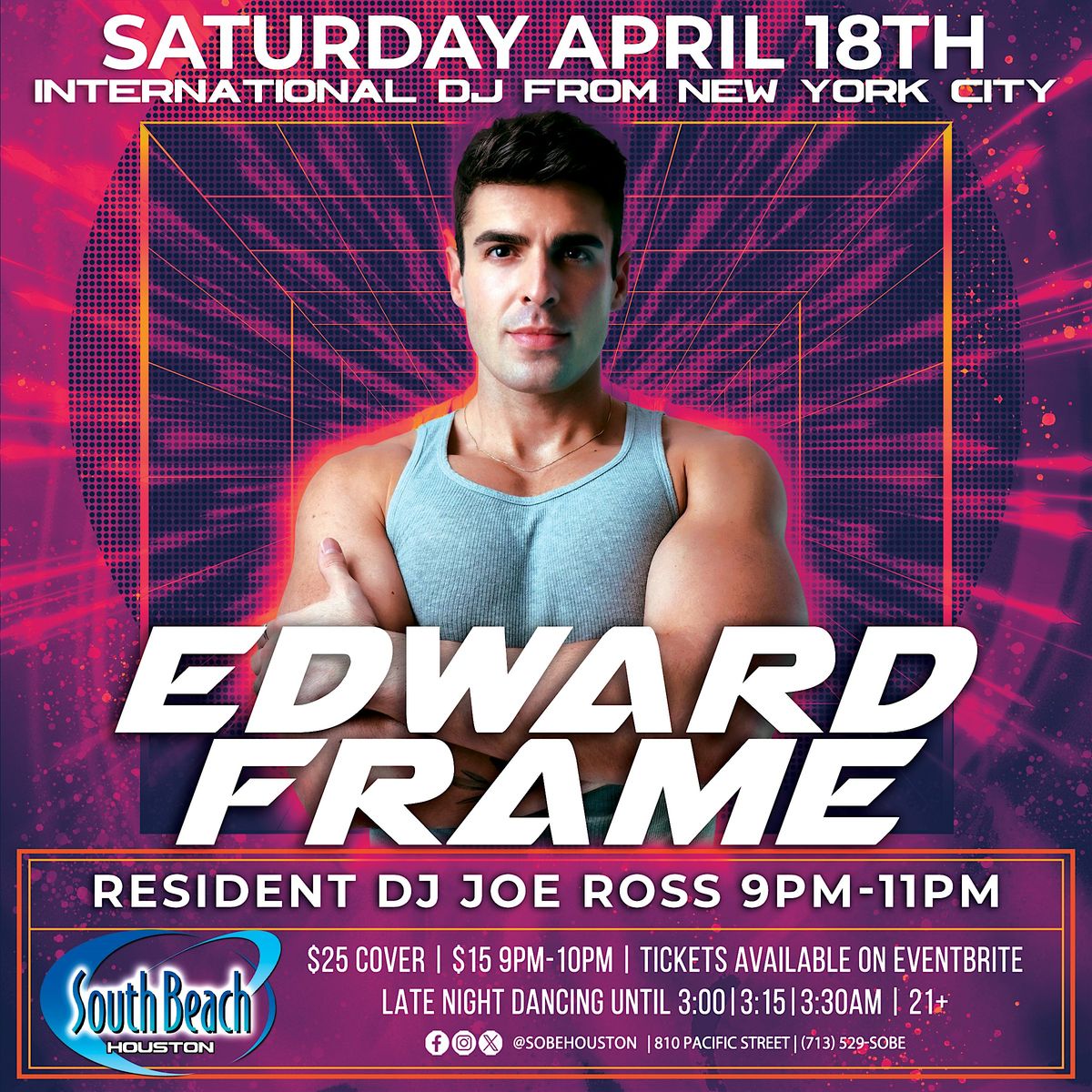 Get ready for an electrifying night at South Beach Houston as internationally recognized DJ Edward Frame takes over the decks for an unforgettable experience.