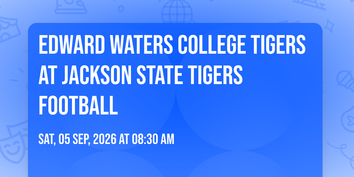 📍 Location: 32.33, -90.1796🎉 Prepare to be amazed at Edward Waters College Tigers at Jackson State Tigers Football, the most anticipated gathering of the season! 🌟 Set against the stunning backdrop of Mississippi Veterans Memorial Stadium in vibrant Jackson, MS, this event promises to redefine your expectations. 📅 Mark your calendars for September 5th, 2026 at 08:30 AM and get ready to immerse yourself in an atmosphere of wonder and excitement. ✨ From the moment you arrive, you'll be transported into a world where memories are made and stories come alive. They have crafted an experience that perfectly harmonizes entertainment, innovation, and community spirit. 🌈 Join us as we create moments that will be discussed for years!