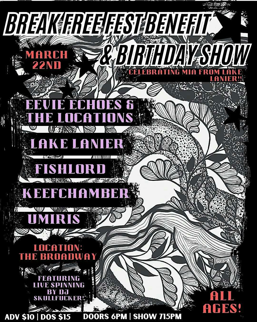A Break Free Fest Benefit & birthday show at The Broadway w/ Eevie Echoes and The Locations, Lake Lanier, Fishlord Keef + Chamber UmirAbout this Event