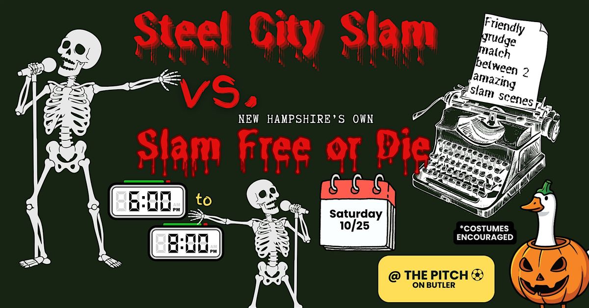 Pittsburgh's own Steel City Slam welcomes our friends, our rivals, our countrypoetpersons! Old grudges die hard in sportspoetry. Come see your favorite local poets welcome their country-touring counterparts from Slam Free or Die in Manchester, NH for a head to head battle for all of the bragging rights! Eight poets enter! They all leave! But four of them leave with a trophy!!