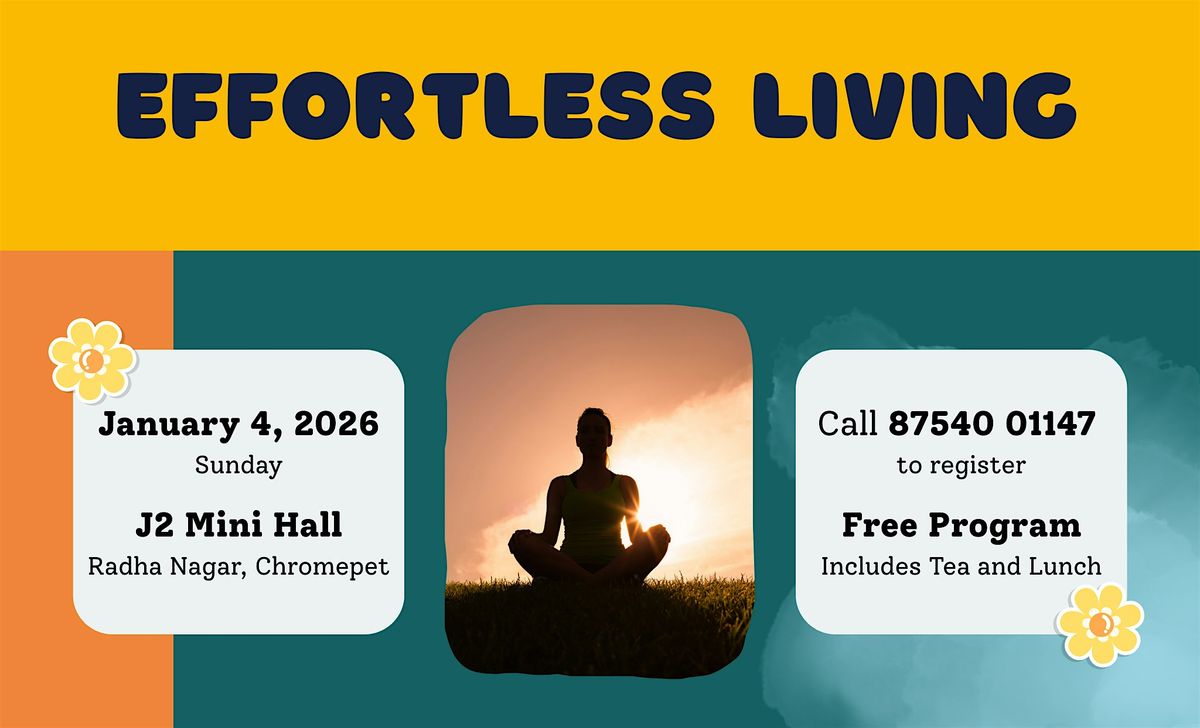 Join us at J2 Mini Hall, Radhanagar, Chromepet on January 4, 2026, Sunday at 9:00 AM for this mindfulness retreat program.