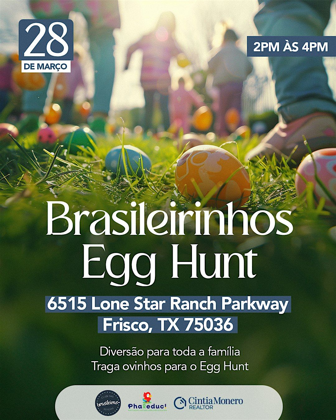 Venha celebrar a Páscoa, fazer amizades, conhecer outras famílias brasileiras na área de Dallas e trazer aas crianças para participarem do EGG HUNT.