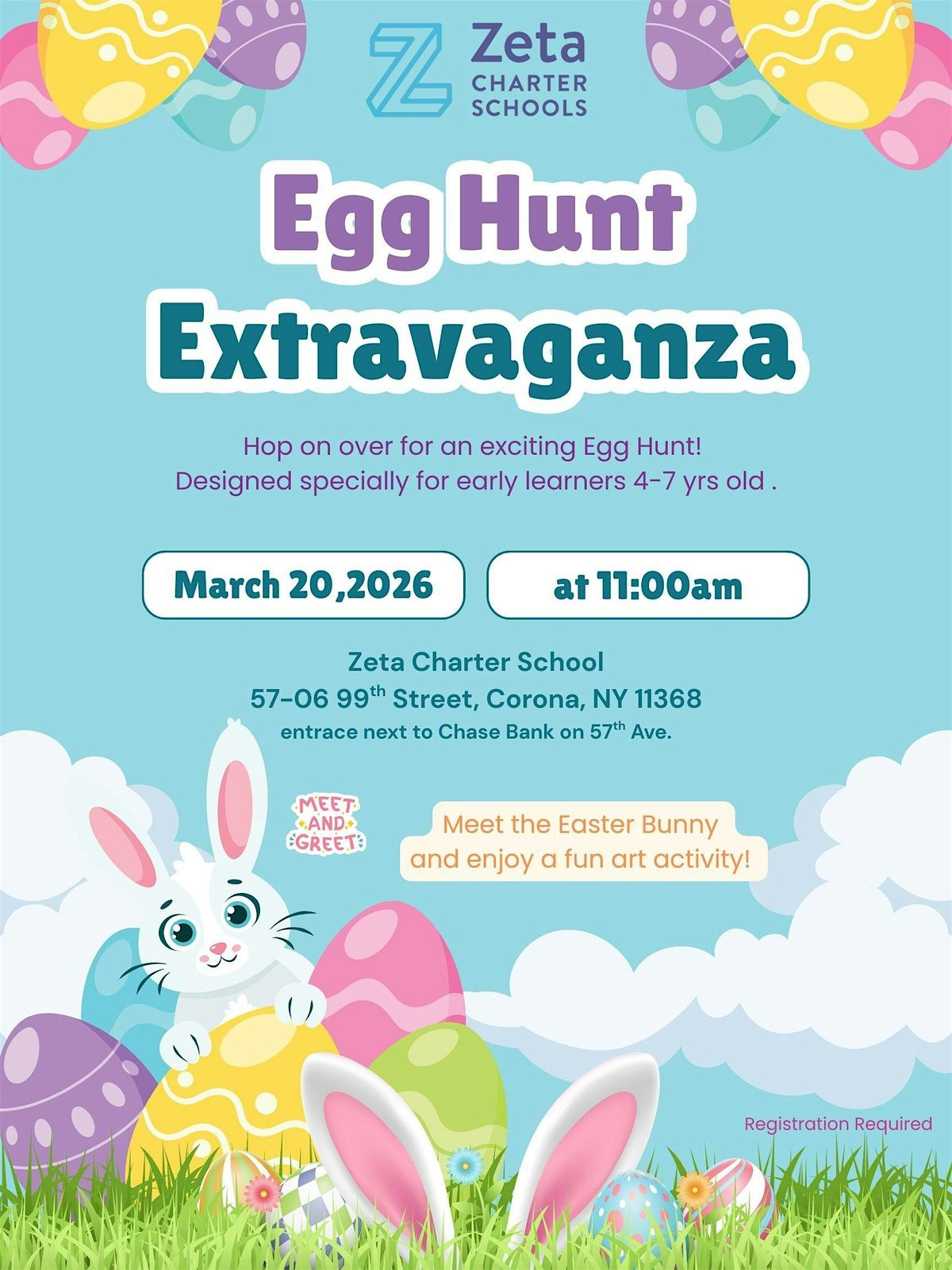 Join Zeta for a fun-filled Egg Hunt Extravaganza! Families are invited to enjoy a festive spring event where children can meet the Easter Bunny, take photos, and participate in an exciting egg hunt. Kids will also enjoy a creative art activity and light snacks.