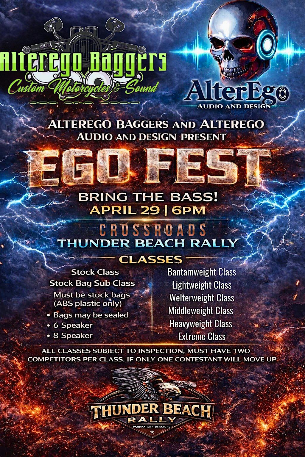 Hosted by Alter Ego Baggers and Alter Ego Audio & Design, EGO FEST is more than a sound competition β itβs an experience. This event brings together some of the hardest-hitting motorcycle audio systems and cleanest bagger builds in the game, all under one roof to launch Thunder Beach with authority.