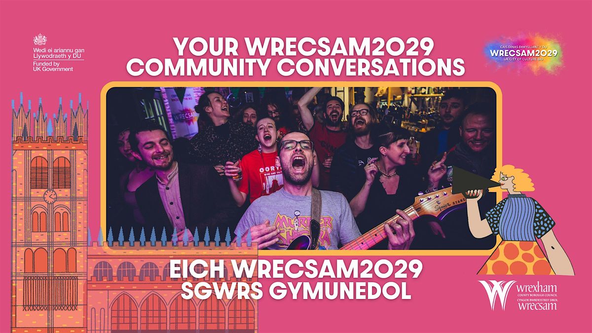 Come ready to listen, share, challenge, and help shape the cultural story of Wrexham — from grassroots creativity to Wrecsam2029 and beyond. Your voice matters. Be part of the conversation.