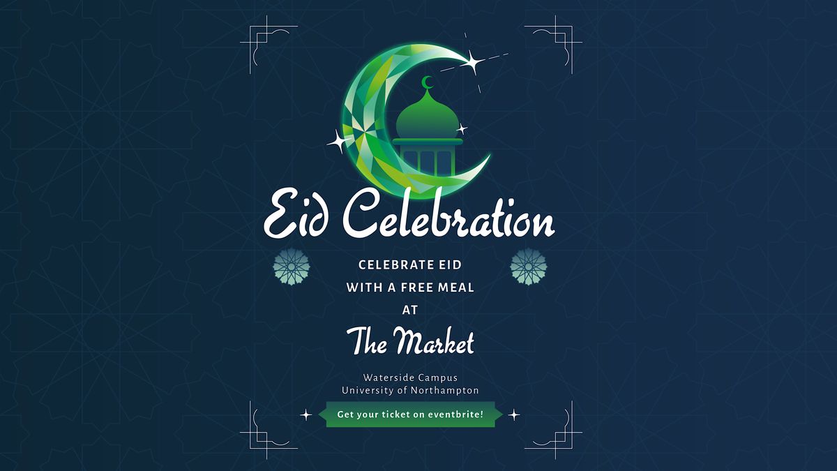 Join your fellow students and staff for a FREE MEAL in the Market at Waterside Campus on the 14th of April to celebrate Eid!! Totally free, just make sure you book a ticket! All staff and students welcome!