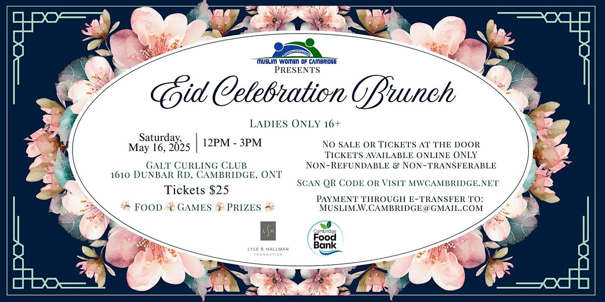 Come join us for a scrumptious brunch at the Galt Curling Club! Eid Celebration, ladies only, over a delicious brunch spread. Indulge in traditional dishes and enjoy the festive atmosphere. This in person event promises a great time filled with good food, games and prizes. Don't miss out on this opportunity to mark this special occasion together. Purchase a ticket for $25.00 now by e-transfering your payment to [email protected].