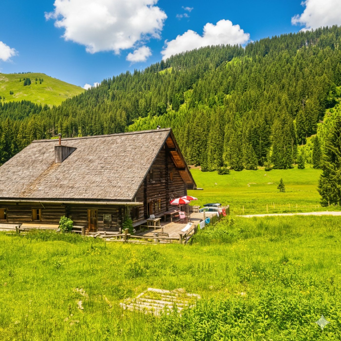Auf der Alm erwartet dich eine rustikale, besondere Atmosphäre. Fern vom ständigen Müssen, fern von Reizen und To-do-Listen. Stattdessen: echte Begegnungen, wohltuende Gespräche, stille Momente unter dem Sternenhimmel und Zeit, um wieder zu spüren, was dir guttut.