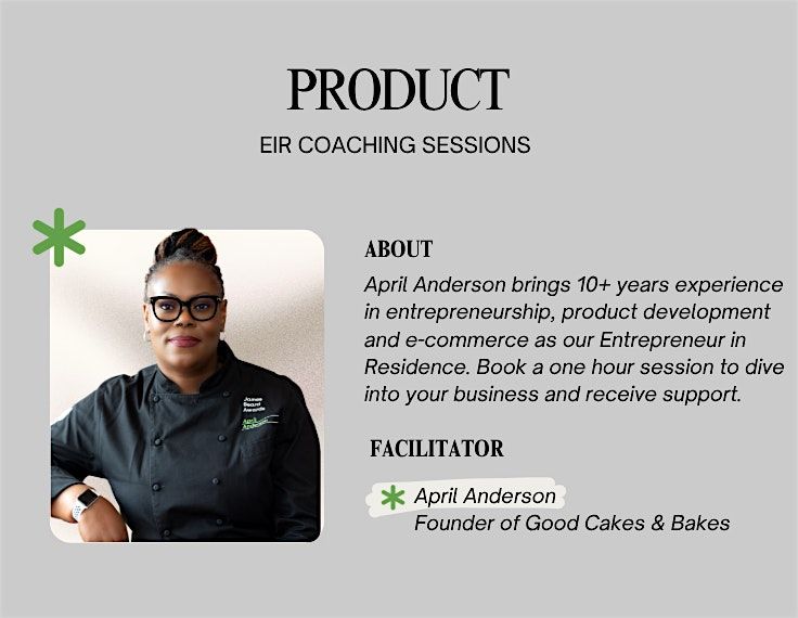 Special sessions available to help you navigate product development and business growth with Entrepreneur in Residence April Anderson.