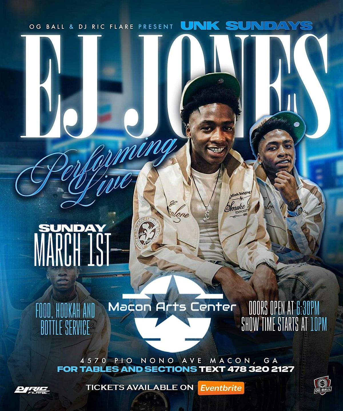 EJ Jones Performing Live At Macon Art Sunday March 1st . Doors Open at 6:30 pm For More info contact OG Ball at 4783202127