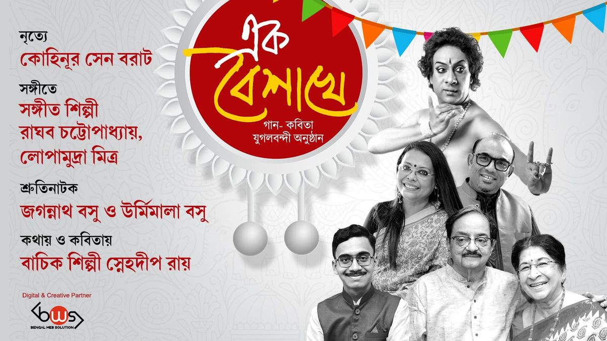 Ek BoishakeA Musical & Cultural Celebration of Poila BoishakhCelebrate the spirit of the Bengali New Year with “Ek Boishake”, a vibrant evening of music, poetry, dance, and storytelling that brings together some of Bengal’s beloved artists on one stage. The program beautifully blends tradition and performance, creating a heartfelt tribute to the rich cultural heritage of Bengal.The evening will feature an elegant dance performance by Kohinoor Sen Barat, setting the festive tone of Poila Boishakh with graceful expressions and rhythm.Renowned singers Raghav Chattopadhyay and Lopamudra Mitra will enchant the audience with soulful Bengali songs, weaving nostalgia, melody, and emotion into the celebration.Adding a theatrical dimension, Jagannath Basu and Urmimala Basu will present a powerful Shrutinatak, bringing literature and drama alive through voice and performance.The program will also feature recitation and storytelling by celebrated elocutionist Snehadeep Roy, who will present selected poetry and narration to enrich the cultural tapestry of the evening.“Ek Boishake” is not just a show, but a celebration of Bangla culture, music, poetry, and performance, welcoming the Bengali New Year with warmth, artistry, and joy.🎭 Genre: Music | Dance | Poetry | Theatre