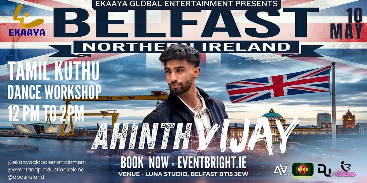 Get ready for an exciting dance workshop with Ahinth Vijay, coming to Luna Studio's Belfast for the very first time in Ireland! Join us on May 10, 2026 at 12:00 PM (BST) to learn new moves, have fun, and connect with fellow dance lovers. Whether you're a beginner or a pro, this session is all about passion and rhythm. Don't miss out on this unique chance to dance and vibe together!