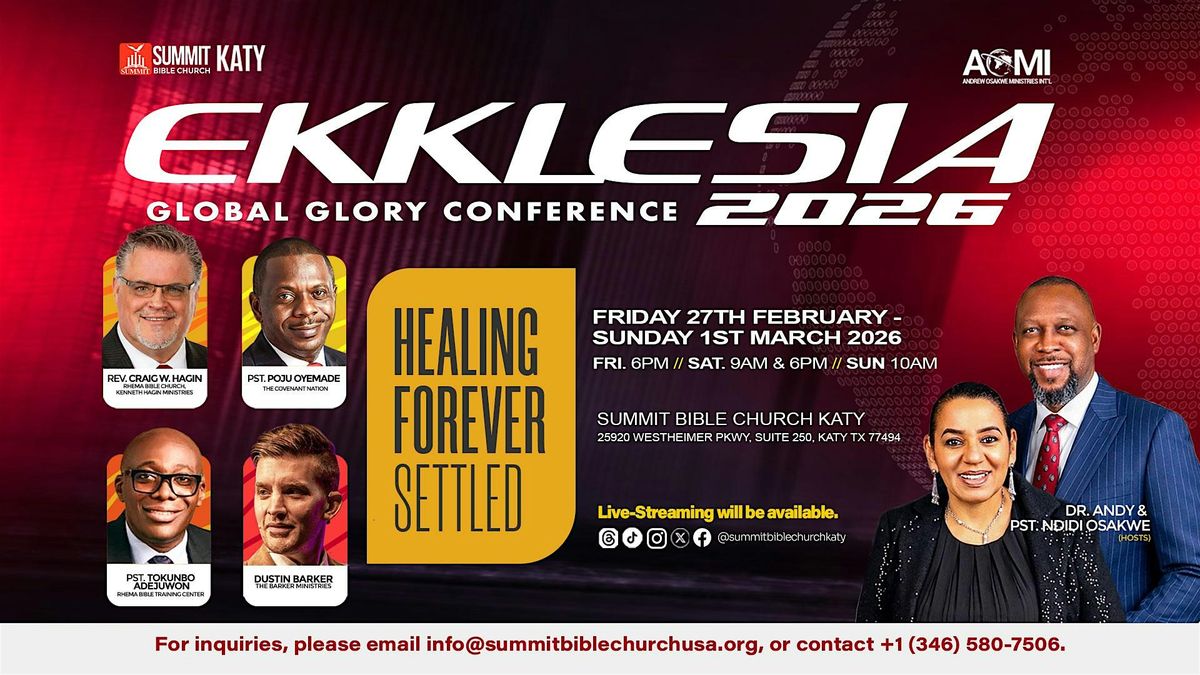 The Ekklesia Global Glory Conference: Healing Forever Settled is a transformational gathering designed for believers who are ready to witness the supernatural, experience divine restoration, and walk boldly in the finished work of Christ.