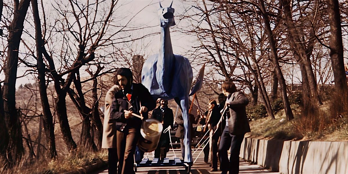 Imatge: Fotografia de la sortida del manicomi de San Giovanni de Marco Cavallo, M.E. Smith, 1973