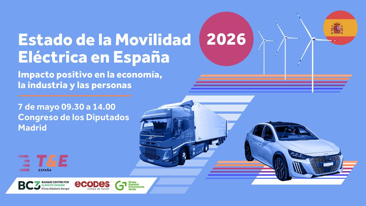 T&E, ECODES, el Grupo de Crecimiento Verde y el Basque Centre for Climate Change organizamos el encuentro “El estado de la movilidad eléctrica en España: Impacto positivo en la economía, la industria y las personas” el próximo jueves 07 de mayo, entre las 9.30 y las 14 horas en la sala Clara Campoamor en el Congreso de los Diputados en Madrid, en el que nos gustaría contar con tu asistencia.
