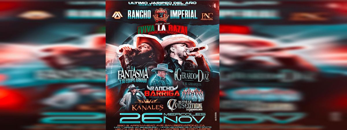Experience the exciting event 'EL FANTASMA, GERARDO DIAZ, KANALES & MAS' at Explanada Imperial , San Bernardino, CA, United States. This must-attend gathering promises an unforgettable experience for all attendees. Join us for a day filled with innovation, networking, and inspiration. Claim your ticket to be at the forefront of exciting innovation. #ELFANTASMA,GERARDODIAZ,KANALES&MAS #event #exciting #San BernardinoEvents #CAEvents