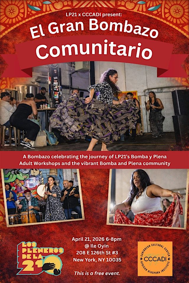 The Los Pleneros de la 21 Bomba and Plena Adult Workshop (BPAW) Bombazo at Ile Oyin at the (CCCADI) celebrates the learning, growth, and ongoing journey of the students of 's . This gathering brings together students, elders, practitioners, and sister organizations to share in the rhythms, movement, and spirit of these living traditions.