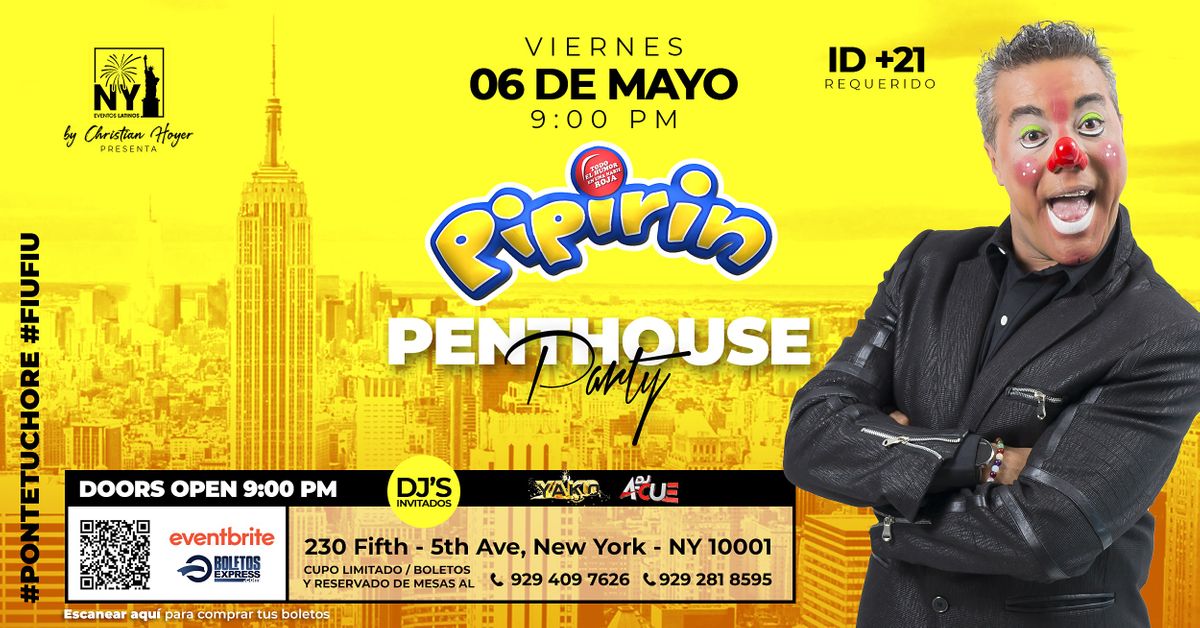 Por 1ra vez en NY el Payaso del momento PIPIRIN nos hara reir a carcajadas en un Penthouse party de la 5ta ave. de Manhattan. ID +21About this Event