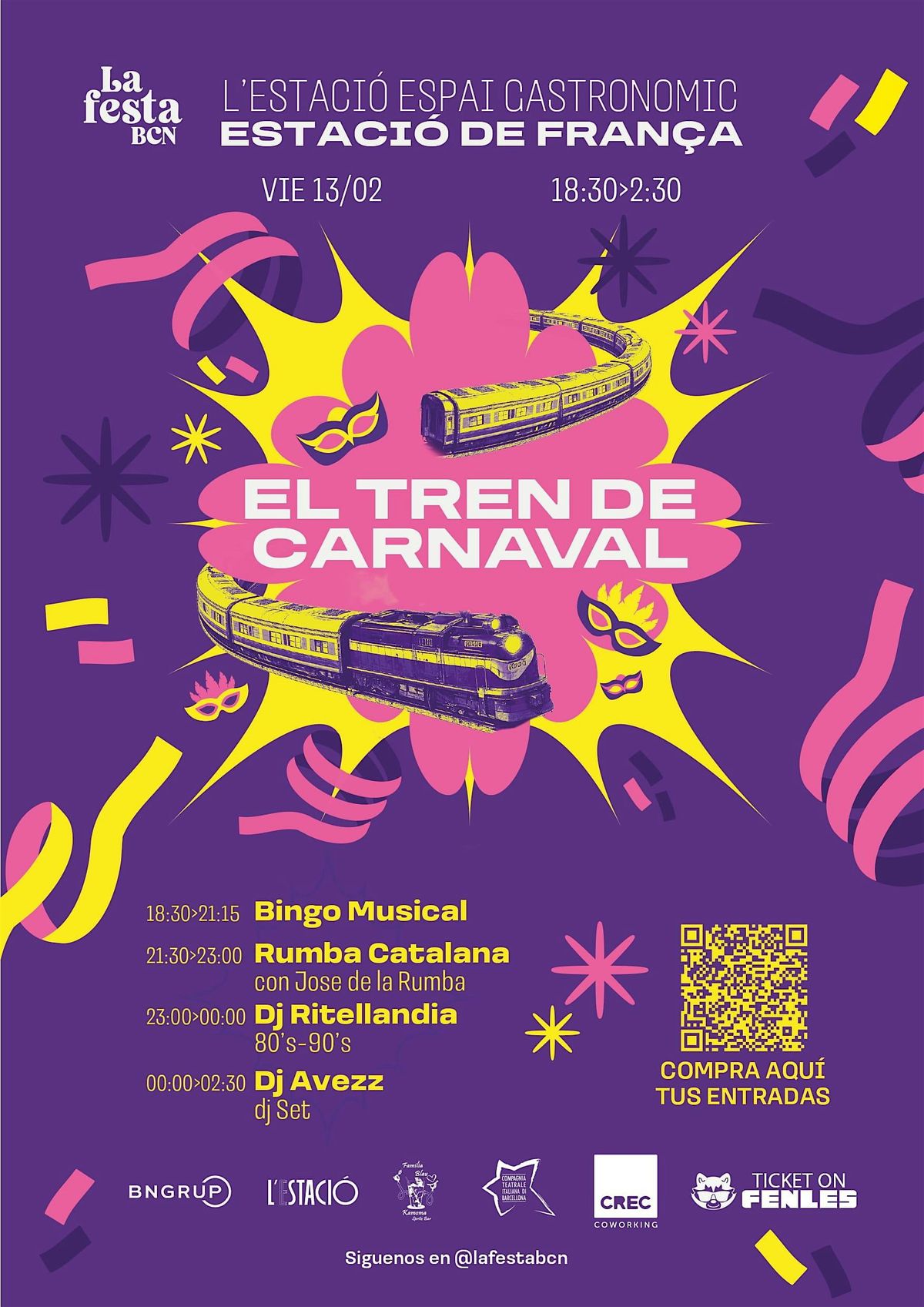 Prepárate para subir al Tren de Carnaval en la Estació de França, convertida por una noche en un gran espacio de música y celebración.