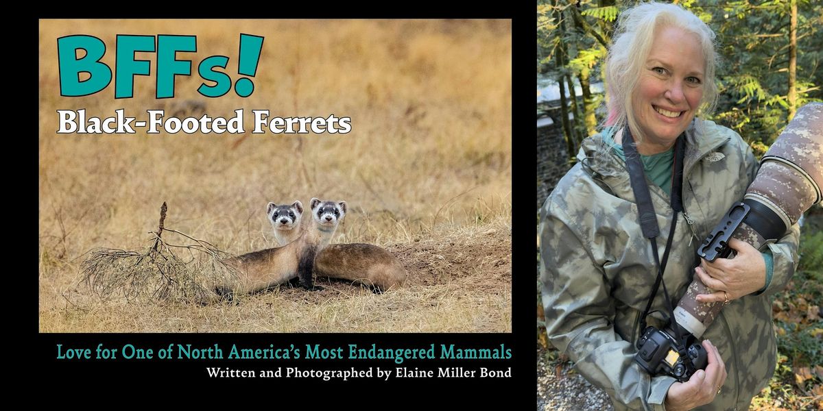 Elaine Miller Bond is an author, science writer, and wildlife photographer based in wildly inspiring Bellingham, Washington. She wrote and photographed the new book, BFFs! Black-Footed Ferrets: Love for One of North America’s Most Endangered Mammals, for fellow ferret fans of all ages. Her previous titles include a series of board books—Running Wild, Living Wild, and Wild Colors of the West—and a picture-book biography, The Pupfish Hero. Bond’s photographs have appeared on Discovery Channel Canada and in Science, Scholastic, and scientific books about prairie dogs. From America’s grasslands to the Pacific Northwest and beyond, she finds endless inspiration in her love of animals and the hope of saving them.