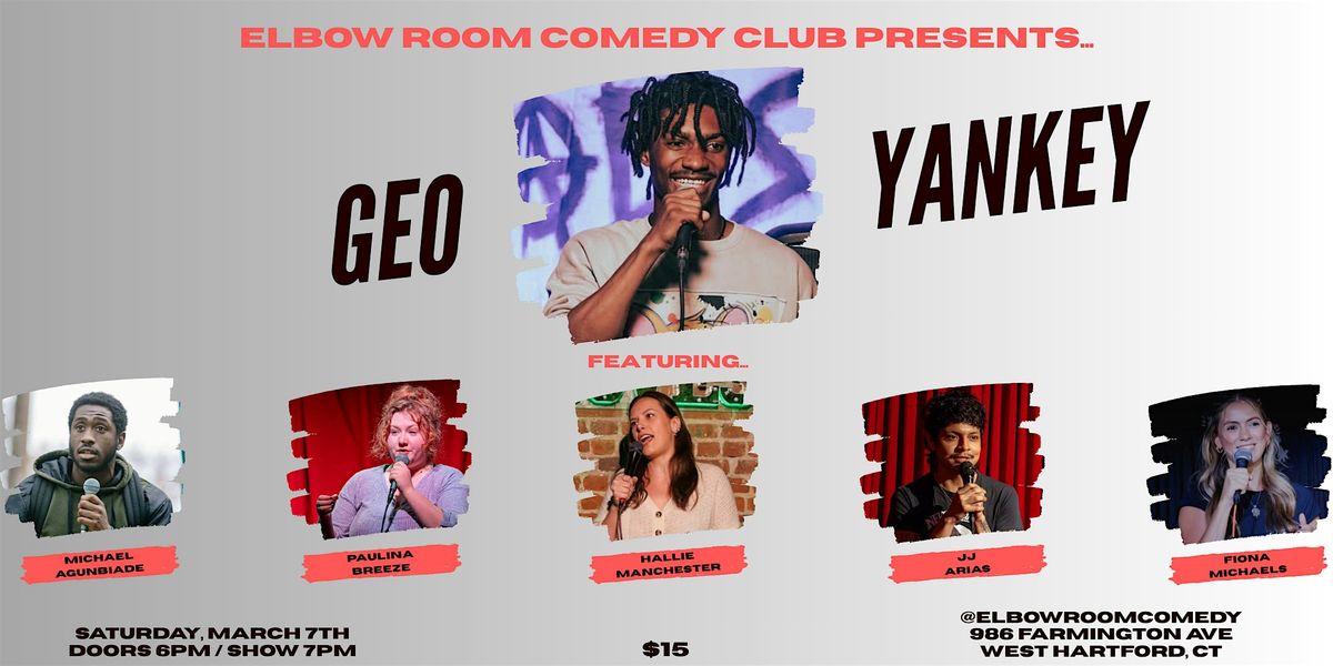 Elbow Room Comedy Club brings you another great Saturday night comedy show, starring Geo Yankey! Join us in West Hartford Center for the best live comedy in Connecticut!
