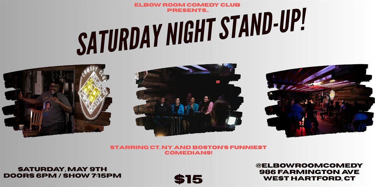 Elbow Room Comedy Club brings you another great Saturday night comedy show, featuring NYC, Boston and CT's top working comedians! Join us in West Hartford Center for the best live comedy in Connecticut!