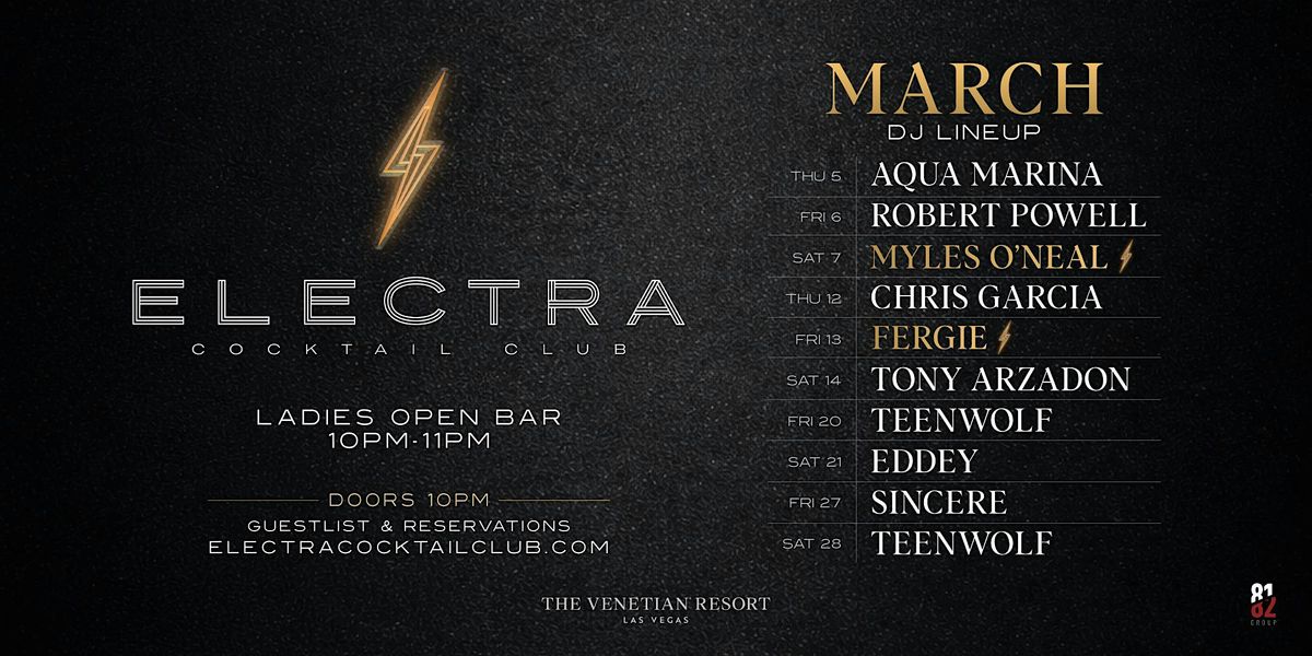 Join us every Thursday, Friday and Saturday as Electra introduces its new elevated nightlife experience, featuring top local DJs spinning the best of hip hop, R&B, EDM, Top 40, Latin, rock, and more. Doors open at 10 PM, with a complimentary open bar for ladies from 10 PM to 11 PM. VIP table service is available for those looking to take their night to the next level.